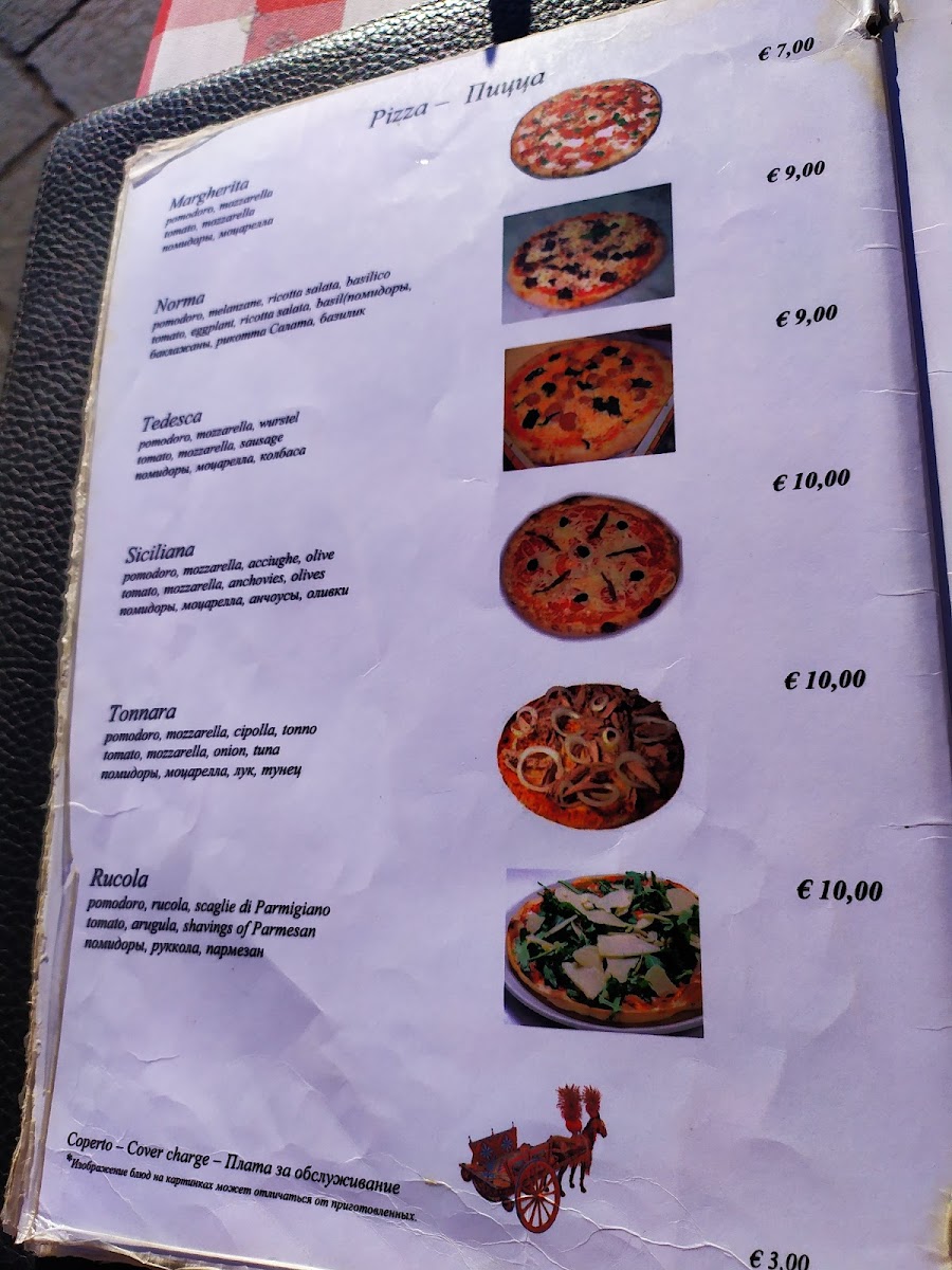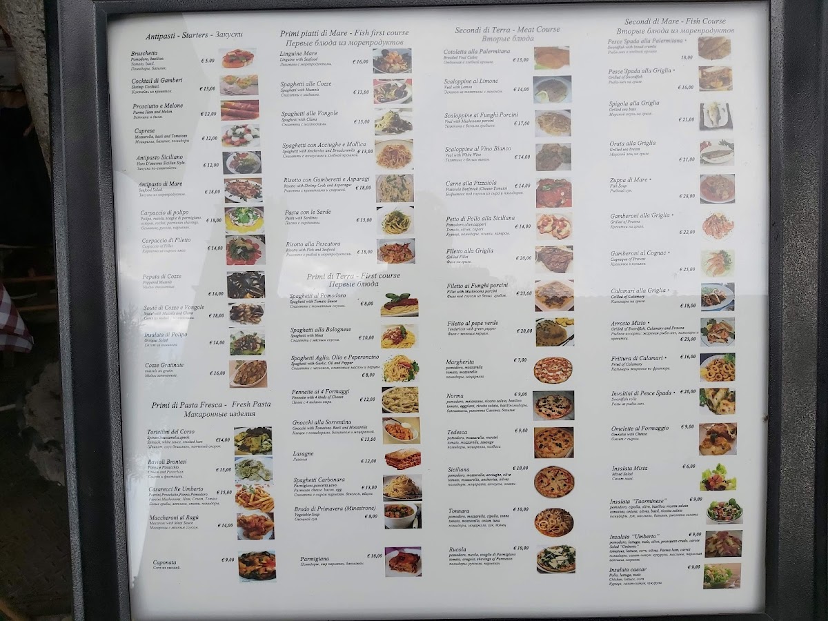 The menu at Rist. Del Corso in Taormina offers a delightful mix of traditional Italian dishes, perfect for anyone looking to enjoy authentic flavors. Starting with the basics, Bread is freshly baked and served warm, setting the tone for the meal. For something heartier, the Breaded Veal is a flavorful option, with its crispy exterior and tender meat inside. For pizza lovers, the selection includes classics like Margherita E Capricciosa, Salami Pizza, and the spicy Pizza Diavola. Tuna Pizza adds a unique twist, while the indulgent Pizza 4 Fromages and Pizza Italia are rich in cheesy goodness.
